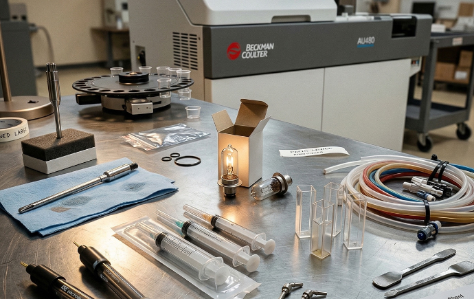 The AU480 is a well-built analyzer, but after years of daily use, parts wear out. ISE electrodes, sample and reagent probes, syringes, photometer lamps, individual quartz cuvettes, wash nozzles, mix bars, tubing kits, STAT table components. If something has failed or is on its way out, you need to know your options.