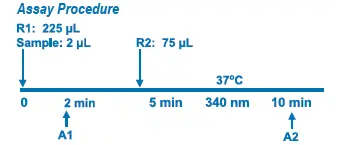 This method is based on the reaction of a sample containing human Apo B and a specific antiserum to form an insoluble complex which can be measured turbidimetrically at 340 nm. By constructing a standard curve from the absorbance of standards the concentration of Apo B in the samples can be determined.