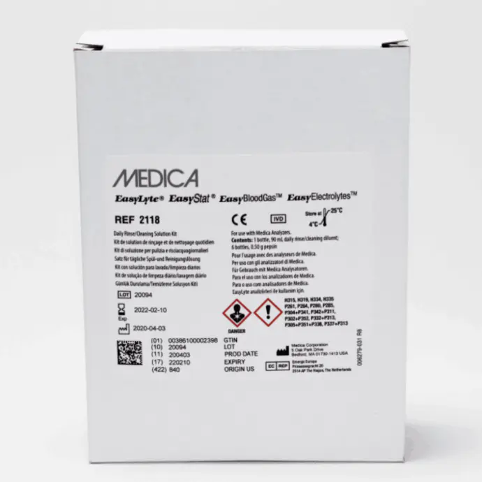 Optimize the performance of your EasyLyte Analyzers with the Medica EasyLyte Daily Cleaning Solution Kit from Scientific Supplies & Technology Inc. This efficient ISE Cleaning Solution Kit, packaged in convenient 15 mL bottles, ensures precise maintenance and consistent results. Each kit includes 6 bottles, tailored to meet the daily operational needs of your laboratory. Designed specifically for use with EasyLyte Analyzers, it aligns with our commitment to providing specialized, high-quality medical equipment. Experience seamless function and longevity in your analyzers with this essential cleaning solution.