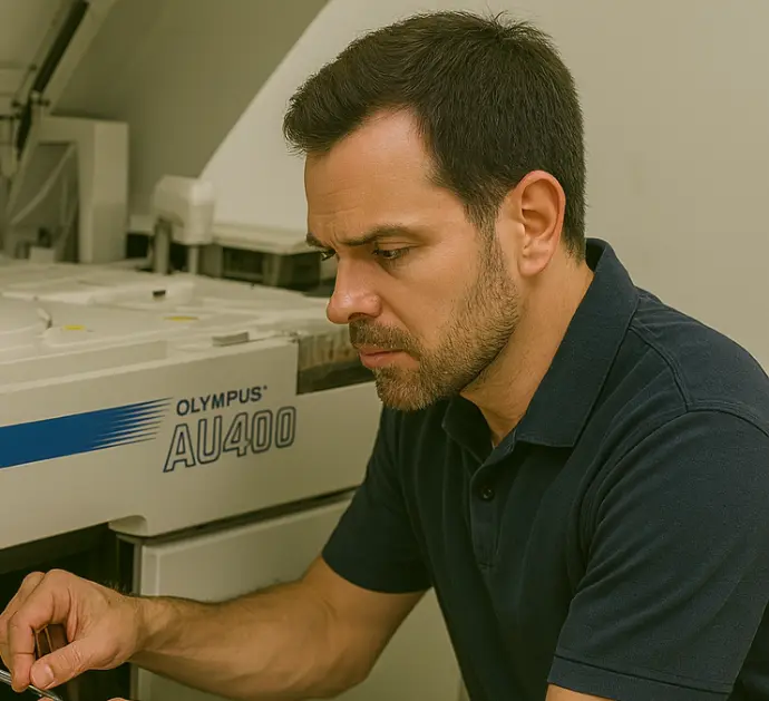 The Olympus AU400 is popular among small and mid-sized labs and hospitals or serves as a dedicated specialty analyzer for larger facilities.