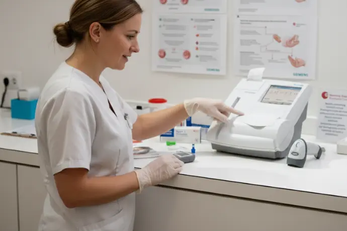Most staff are competent after 30-60 minutes of training. The workflow is simple: turn on the analyzer, insert the cartridge, collect the fingerstick sample, apply sample to cartridge, read the result. No complex procedures or extensive training requirements.